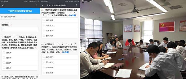 此次党章和党的十九大精神应知应会知识测试,紧密围绕党章和十九大报告,包含了中国共产党的历史使命、习近平新时代中国特色社会主义思想和党的执政能力建设等要点,内容全面,题型多样。创新引入手机端答题方式,单选题、多选题均在“华体(中国)第八党支部”公众号上答题,支部参与率100%,并实时显示用时、成绩及排名,简答题的笔试安排在A705会议室进行。